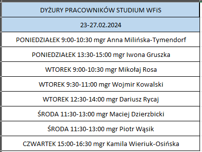 - Informacje o zapisach na WF w semestrze letnim 2025/2026 są dostępne w zakładce ZAPISY WF.